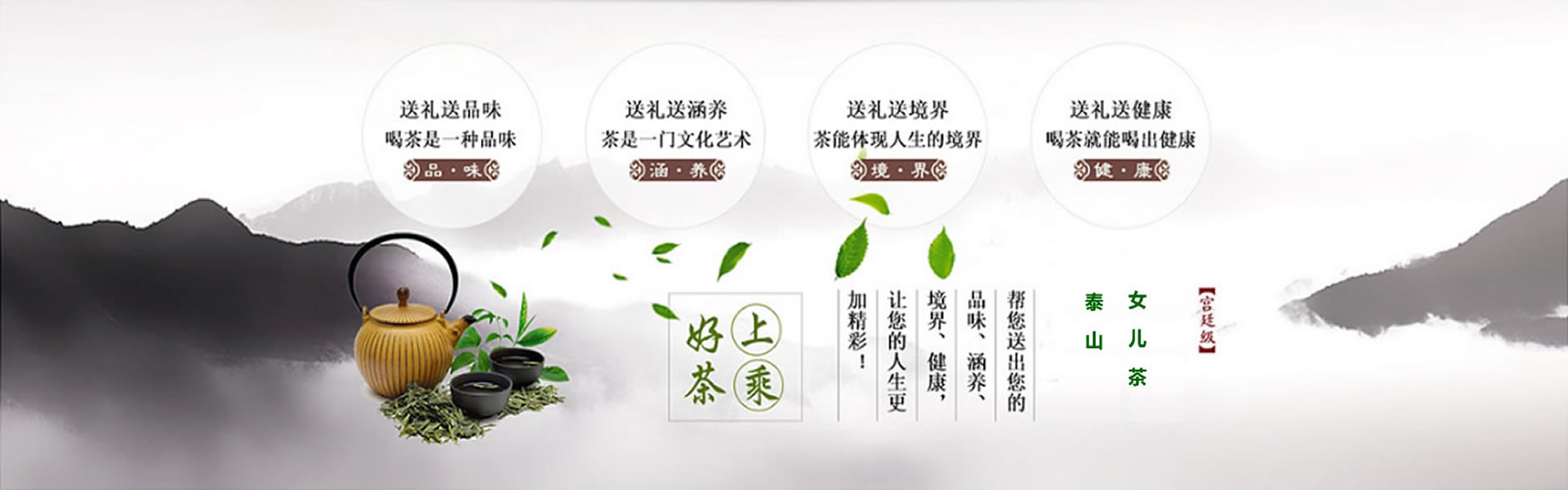 “泰山女儿茶”,产茶区纬度高、光照时间长、昼夜温差大,茶树休眠期长,采摘期短,所产茶叶叶片肥厚坚结,茶色清沏剔透、碧绿娇嫩、清澈晶莹,饮之回味醇美,沁人心脾,留香悠长,有浓厚的泰山板栗香气,素有“茶中板栗”之美称;且营养成分含量高,富含钾、钠、锌、铁、锰等微量元素,常饮有清心提神、软化血管等功效。泰山女儿茶成品曲卷优美,冲泡时茶叶始终沉于杯底,叶色由黑变绿,舒展开来,仿佛一群美丽的少女翩翩起舞,给人以美的享受,引发无限诗情画意。